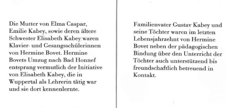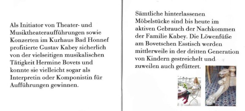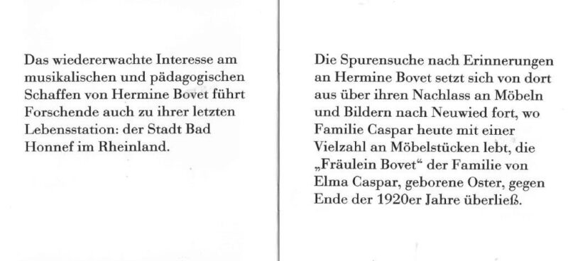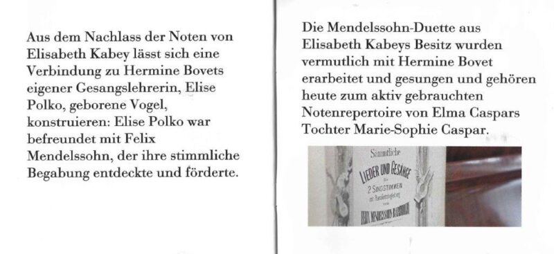 Kürzlich erhielt der Verein für das Archiv ein von Marie-Sophie Caspar erstelltes Fotobüchlein mit Erinnerungen an Hermine Bovet in Form von Möbeln und Gemälden, die sich im Besitz und Gebrauch ihrer Eltern befinden. In dem Büchlein werden auch die Beziehungen zwischen H. Bovet und der Familie Kabey-Oster-Caspar dargelegt.