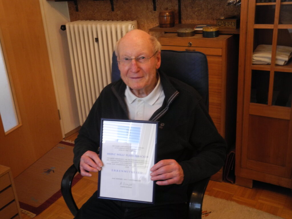 Für den Vereinsvorstand war all das Grund genug, die Verdienste Heinz Willi Fleischhackers durch Verleihung der Ehrenmitgliedschaft zu würdigen. Vorsitzender Willi Birenfeld überreichte ihm die Urkunde coronabedingt in kleiner Runde in seinem Hause.